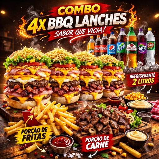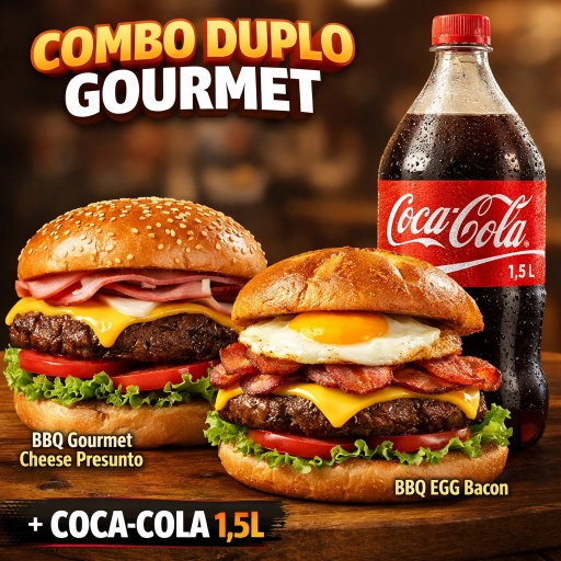 1 BBQ Gourmet Cheese Presunto + 1 BBQ EGG Bacon + refri+ 100g batata grĂĄtis.