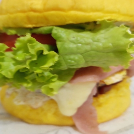 PĂŁo brioche amarelo 2 bife de 90g picanhaGra file 1 presunto + 1 Mussarela + cheddar+ salada +maionese