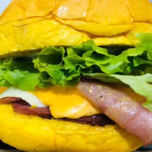 Pão brioche amarelo 2 bife de 90g picanhaGra file 1 presunto + 1 Mussarela + cheddar+ salada +maionese