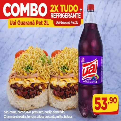 COMBO 2-X Tudo +Refrigerante uai guaranĂĄ Pet 2L. 53,90